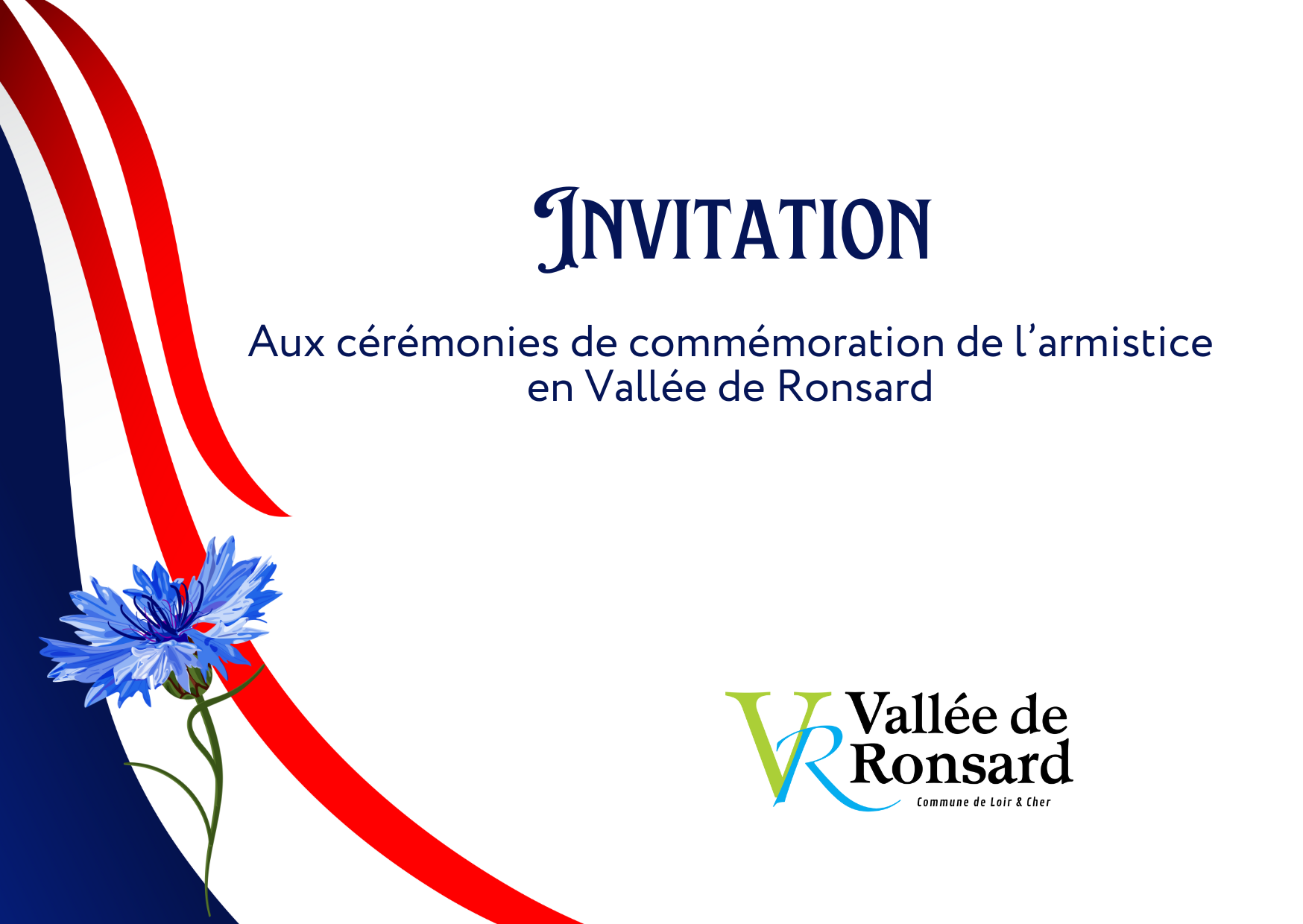 Mardi 11 novembre 2025 à 10h30Place de l’EgliseCouture-sur-Loir41800 Vallée de Ronsard Mardi 11 novembre 2025 à 11h15Parking salle “Beaux Soleils”Tréhet41800 Vallée de Ronsard Rassemblement et défilé en présence des Sapeurs-Pompiers et des porte-drapeaux.Dépôt de gerbe de fleurs au monument aux morts. Vin d’honneur offert par la municipalité.